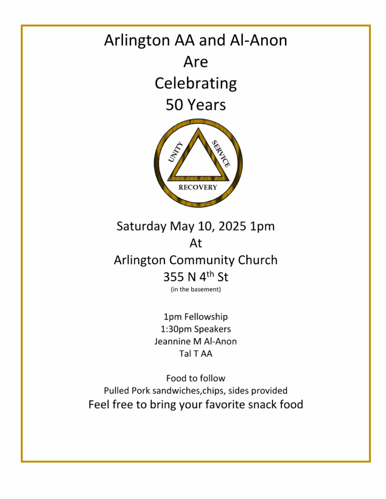 Arlington AA and Al-Anon are celebrating 50 Years!