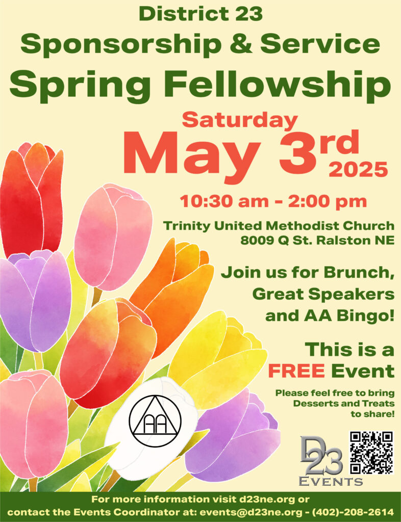 District 23 Sponsorship & Service Spring Fellowship Saturday, May 3, 2025 10:30 am - 2:00 pm
